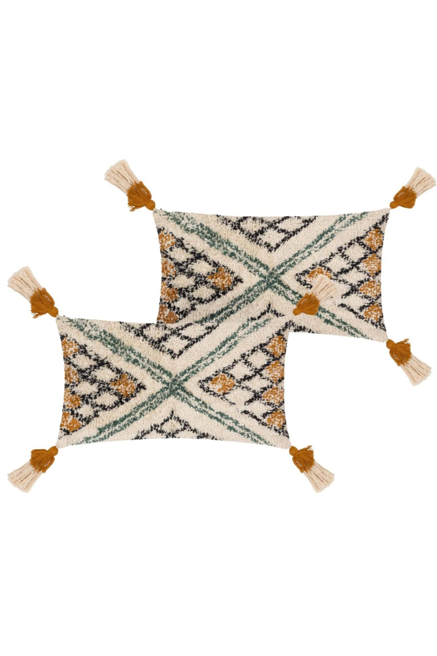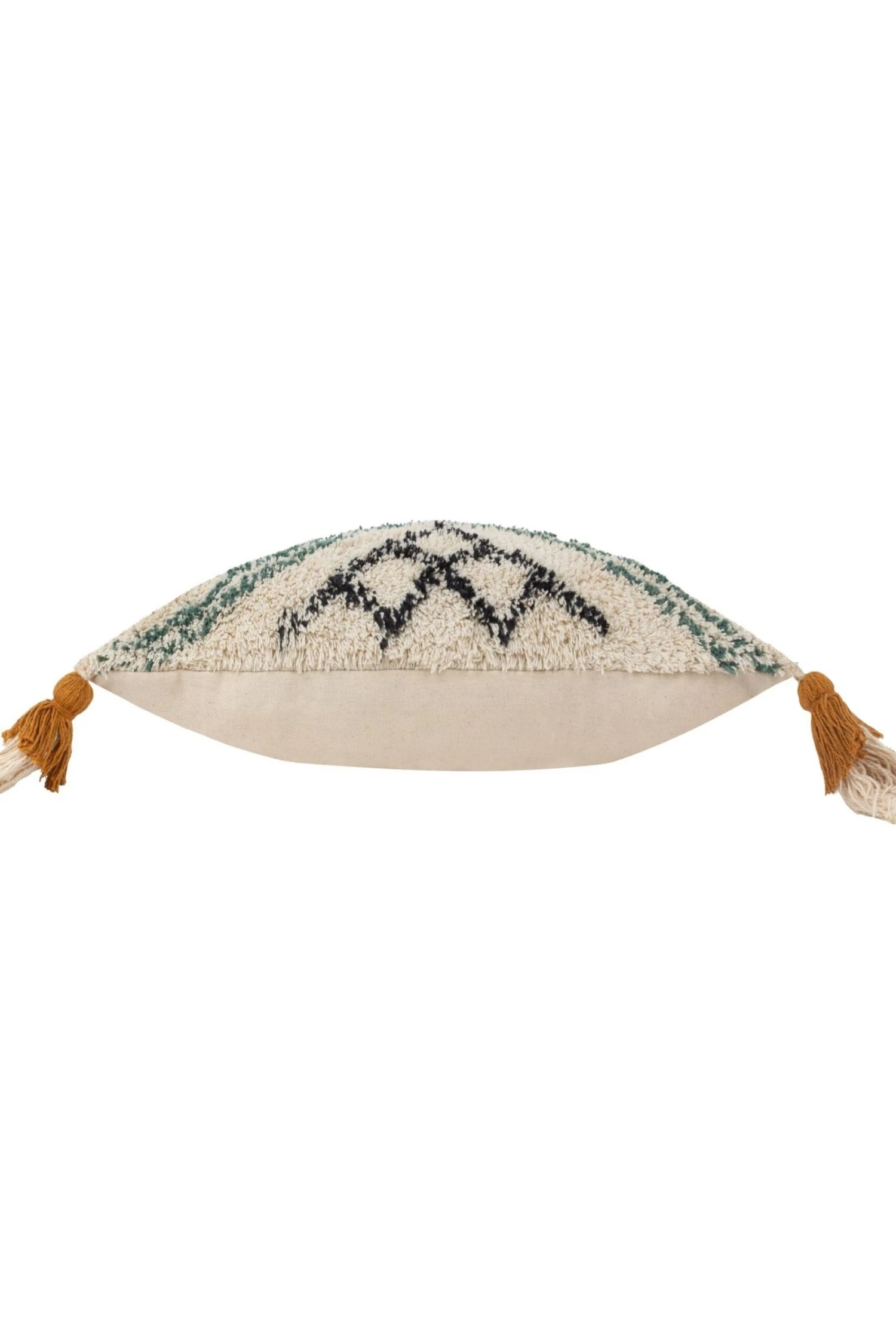 Create texture and warmth with this global rug inspired cushion, featuring kilim design and high-pile tufting, and finished with double layer corner tassels. Layer up with other textures and colours to create cosy style in any room.
