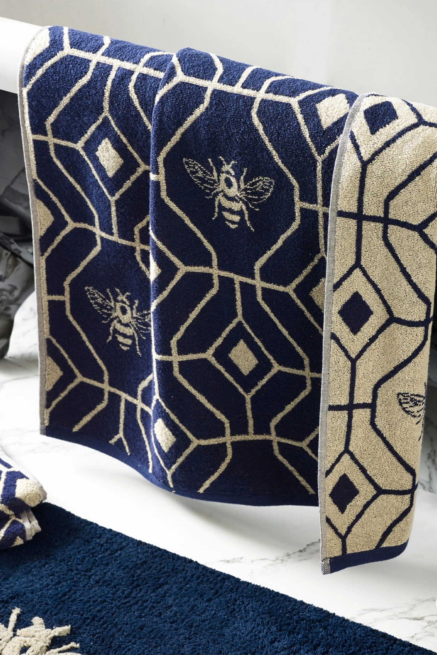 Make your bathroom buzz with the Bee Deco 4-piece towel bale. Featuring a honeycomb-inspired geometric design with buzzing bumble bees, these 100% Turkish cotton towels are the perfect addition to any modern, colour-loving home! This product is certified by OEKO-TEX® showing it has been sustainably made.