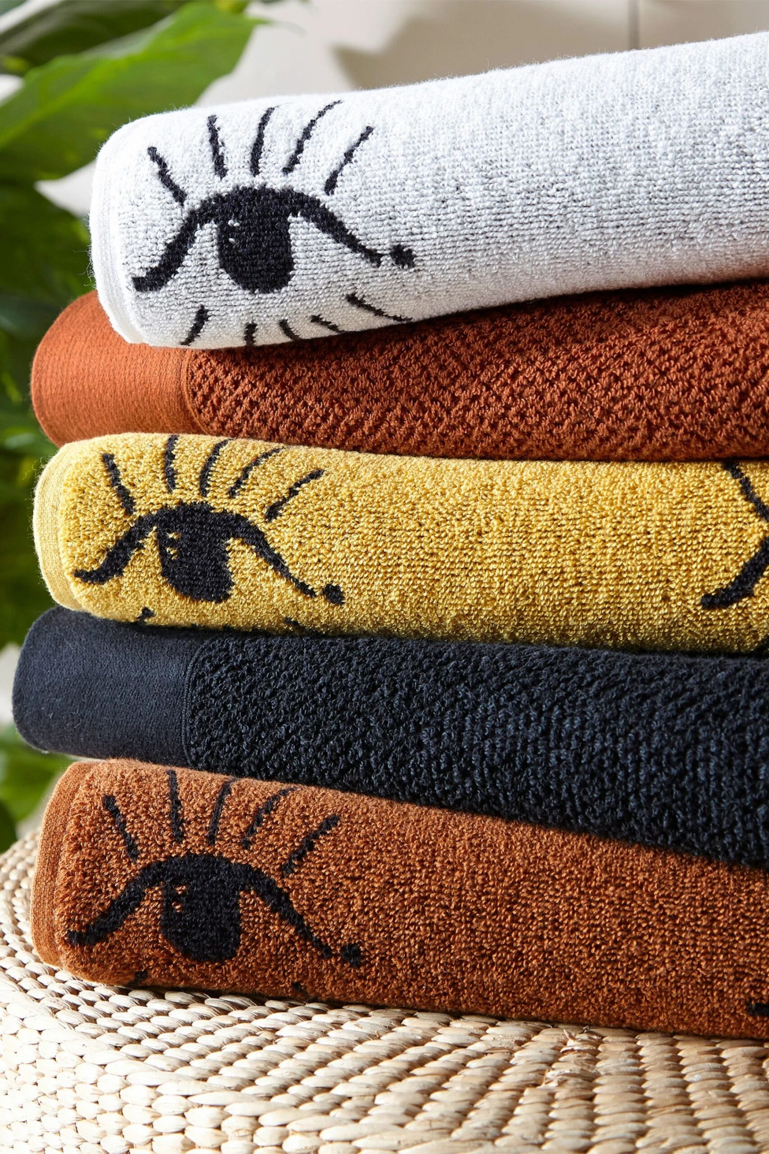 Add instant personality into your bathroom with this bold repetitive design featuring mystical watching eyes. Made out of 100% Turkish cotton, the Theia 4-piece towel bale is wonderfully soft and also quick drying, making it the perfect addition to your home. This product is certified by OEKO-TEX® showing it has been sustainably made.