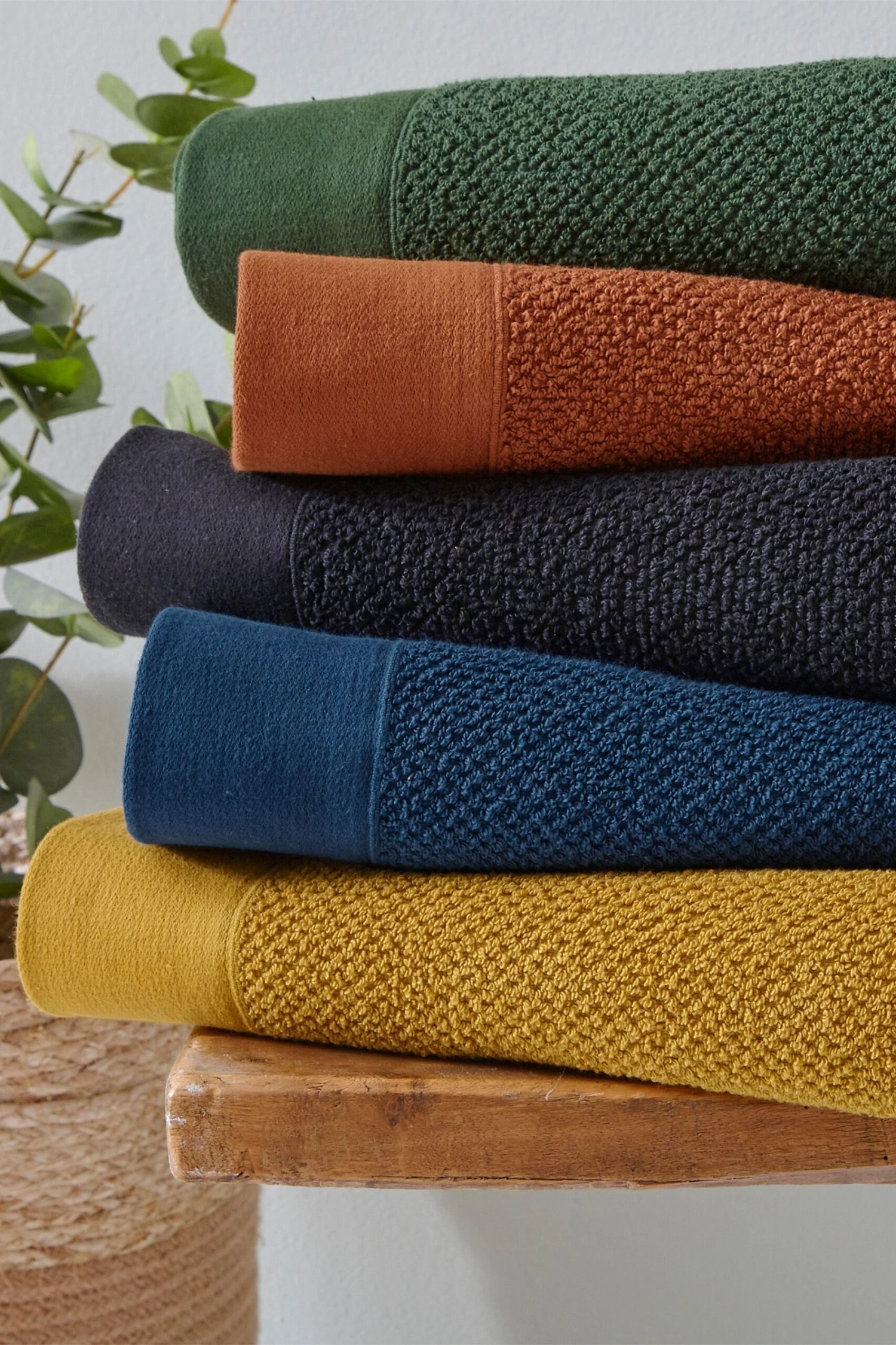 Accessorise your bathroom with the simplistic yet chic textured towel bundle. Made from 100% Cotton, this design features an Oxford panel trim and is also quick-drying and super absorbent. This product is certified by OEKO-TEX® showing it has been sustainably made.