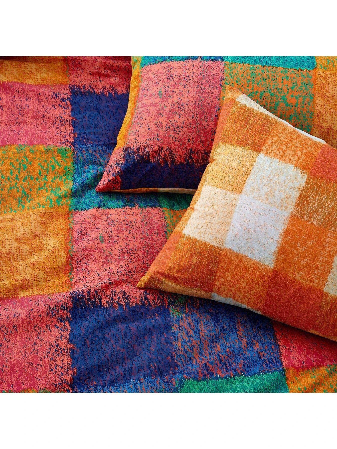 Eye-catching and vibrant, it captures the attention with a series of oversized checks in shades of blue, pink, orange and green. Each individual square uses unique patterning to build a textured appearance that’s full of charm. For added versatility, you can flip it over to reveal a more traditional print in an orange and white palette, so it’s easy to choose your favourite.