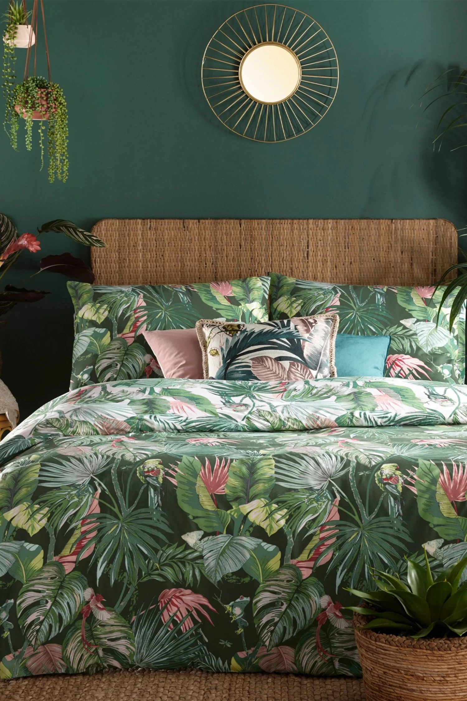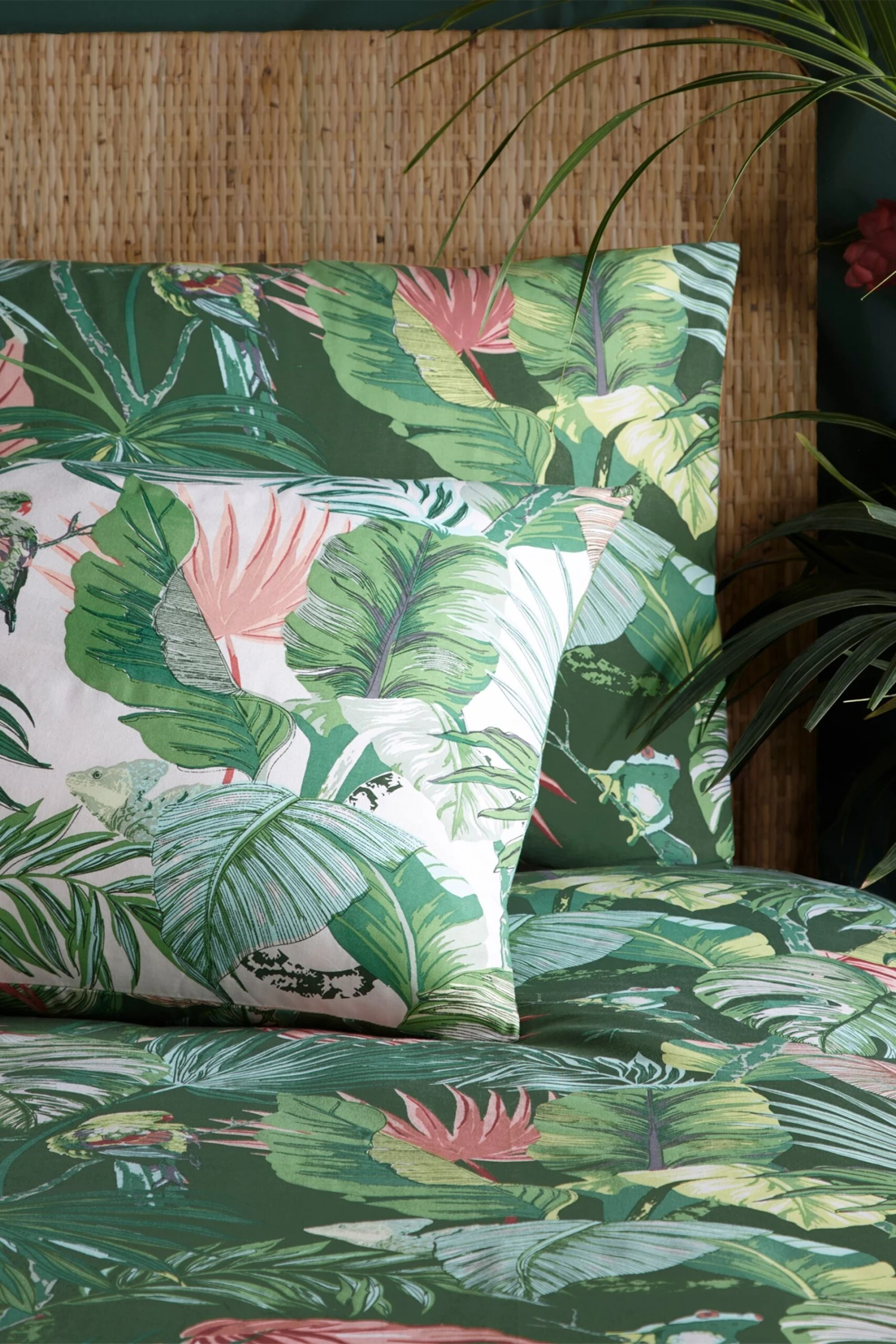 Featuring an exotic reversible design of botanics and rainforest animals from the Amazon. Made using crisp polycotton making this duvet set soft and hard-wearing.