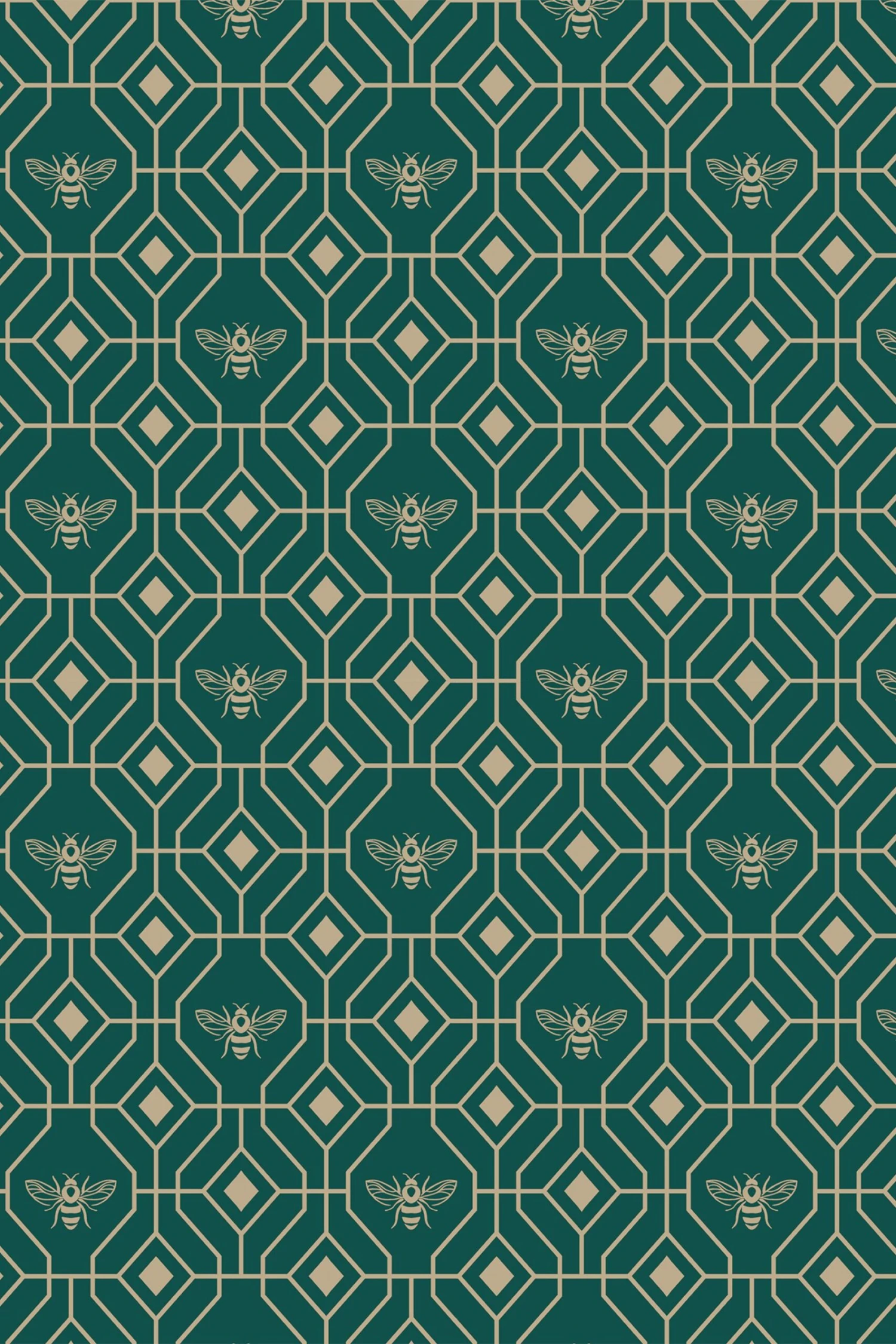 Make your boudoir buzz with the Bee Deco wallpaper featuring a honeycomb inspired geometric design completed with buzzing bumble bees. A rich emerald green hue sits behind metallic gold foil, bringing a contemporary and moody colour scheme into your home. This wallpaper is a paste the wall application; simply paste the wall, hang your paper, and leave to dry. Each roll is 10m long and 52cm wide. Pattern repeat: 53cm Straight match. Our Bee Deco wallpaper can be used to paper the whole room or to create an eye-catching feature wall. This wallpaper is also wipe-able so that any light marks can be dabbed away