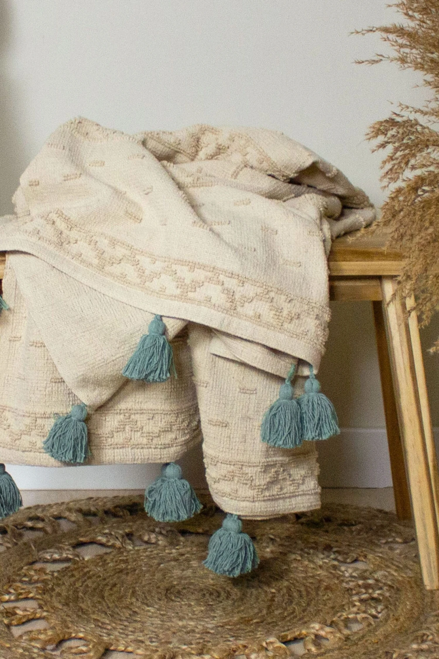 Add some personality and style to your home with the Boho cotton woven throw, featuring contrast colour tassels on two sides and tufting detail. A natural coloured base makes this a versatile throw for any home.