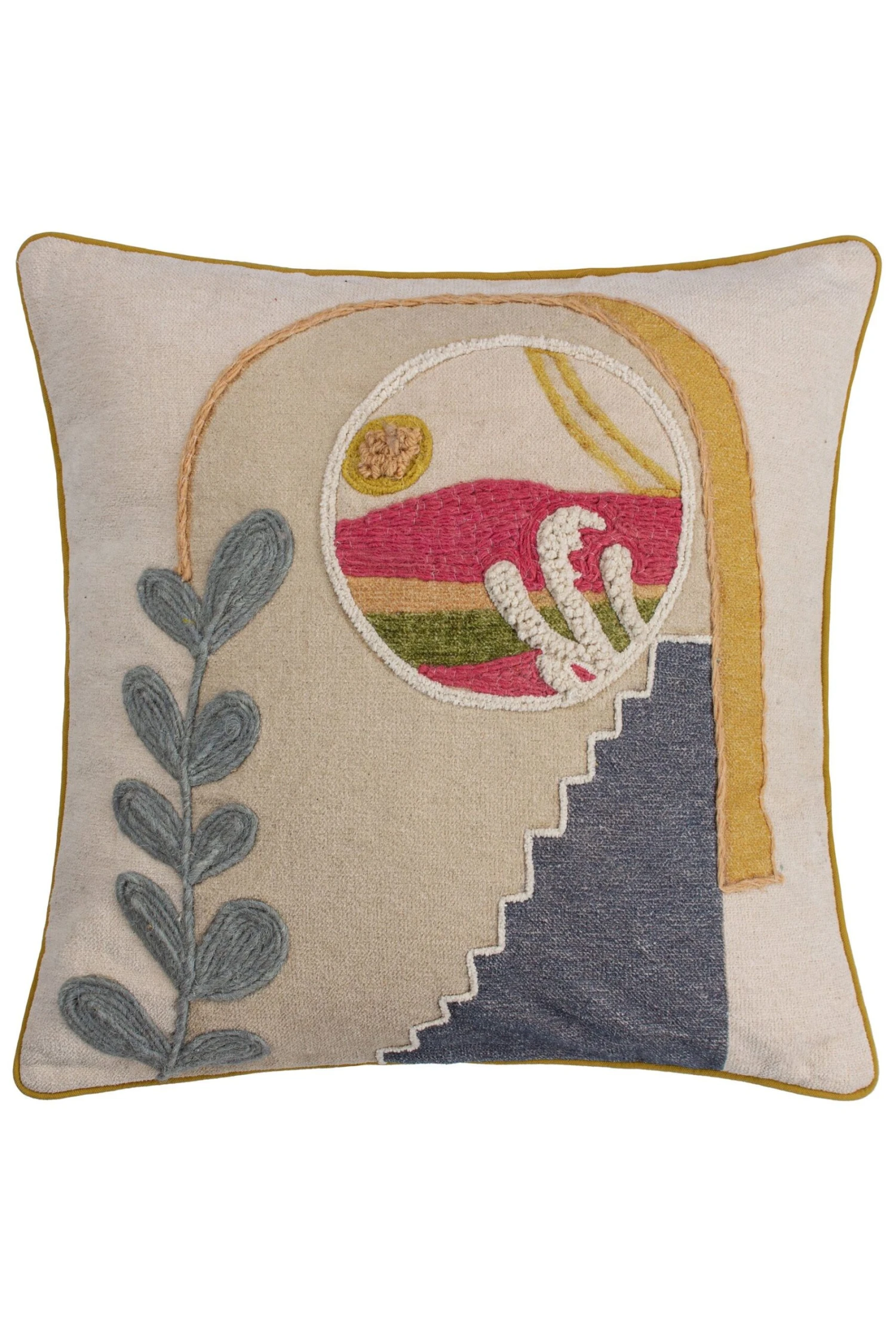 Furn. Chamae Chevron Floral Tasselled Cushion