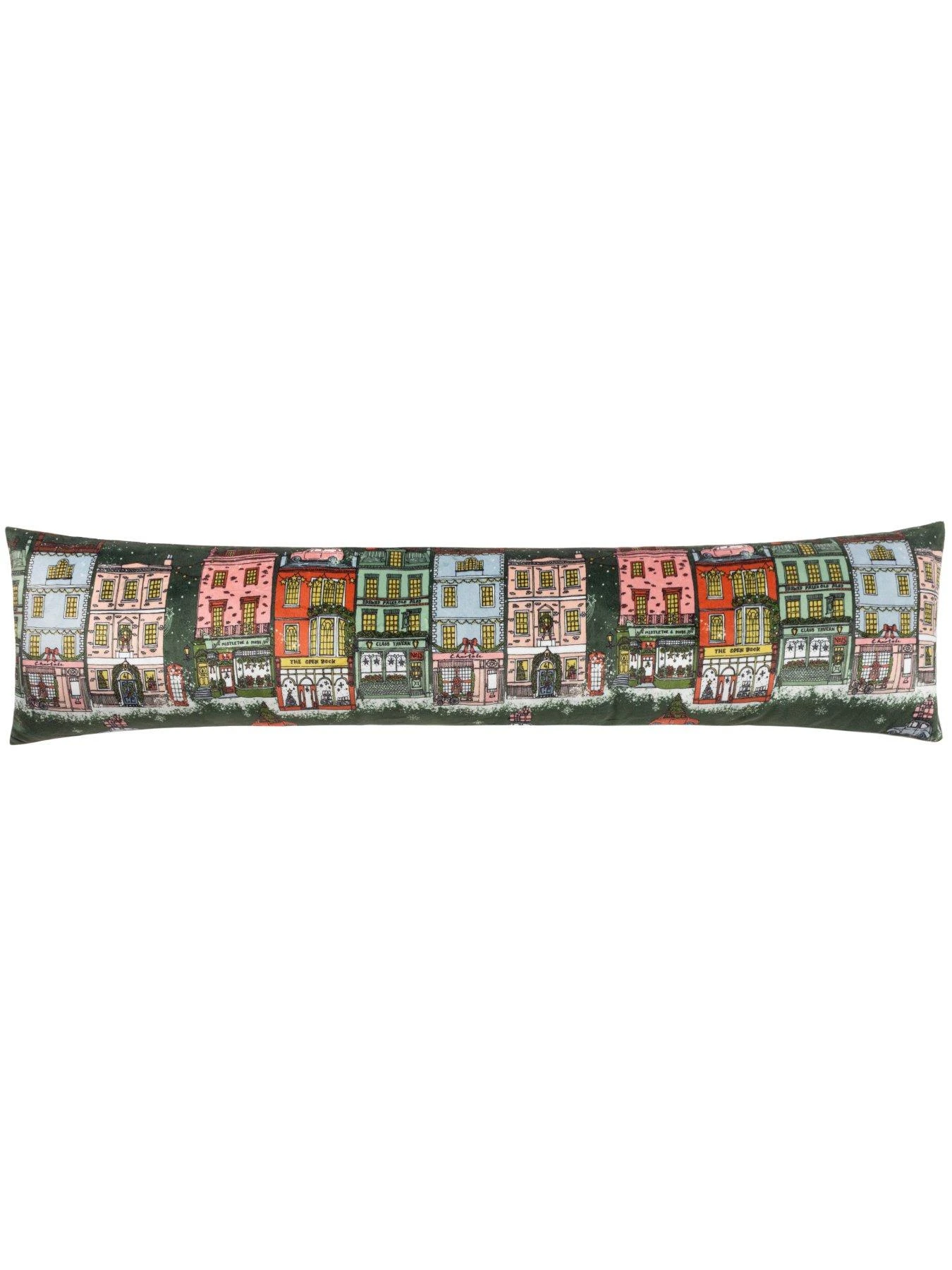 Inspired by traditional, heritage shops, the Christmas Spirit draught excluder is adorned with Christmas décor and snow. The design features visual delights such as a magical street scene, snow-covered telephone boxes and a car overloaded with presents and much more to see! Complete with a contrasting rust soft velvet reverse, this design is the perfect addition for the seasonal period!