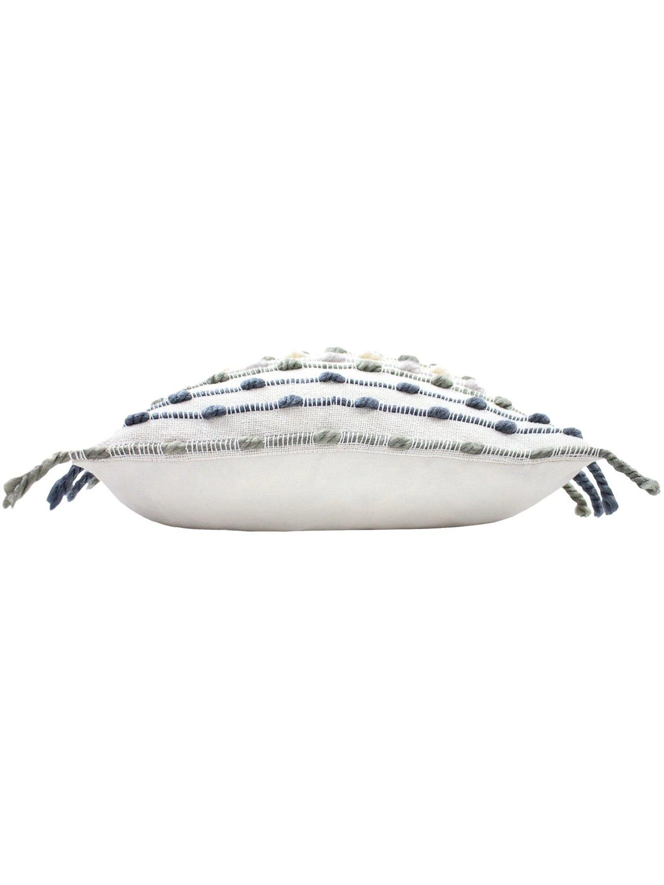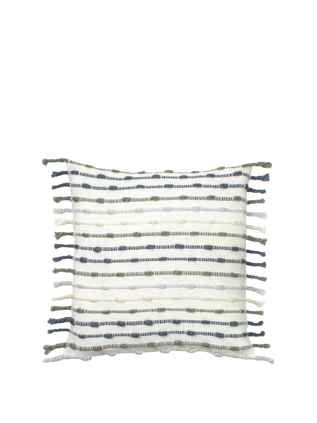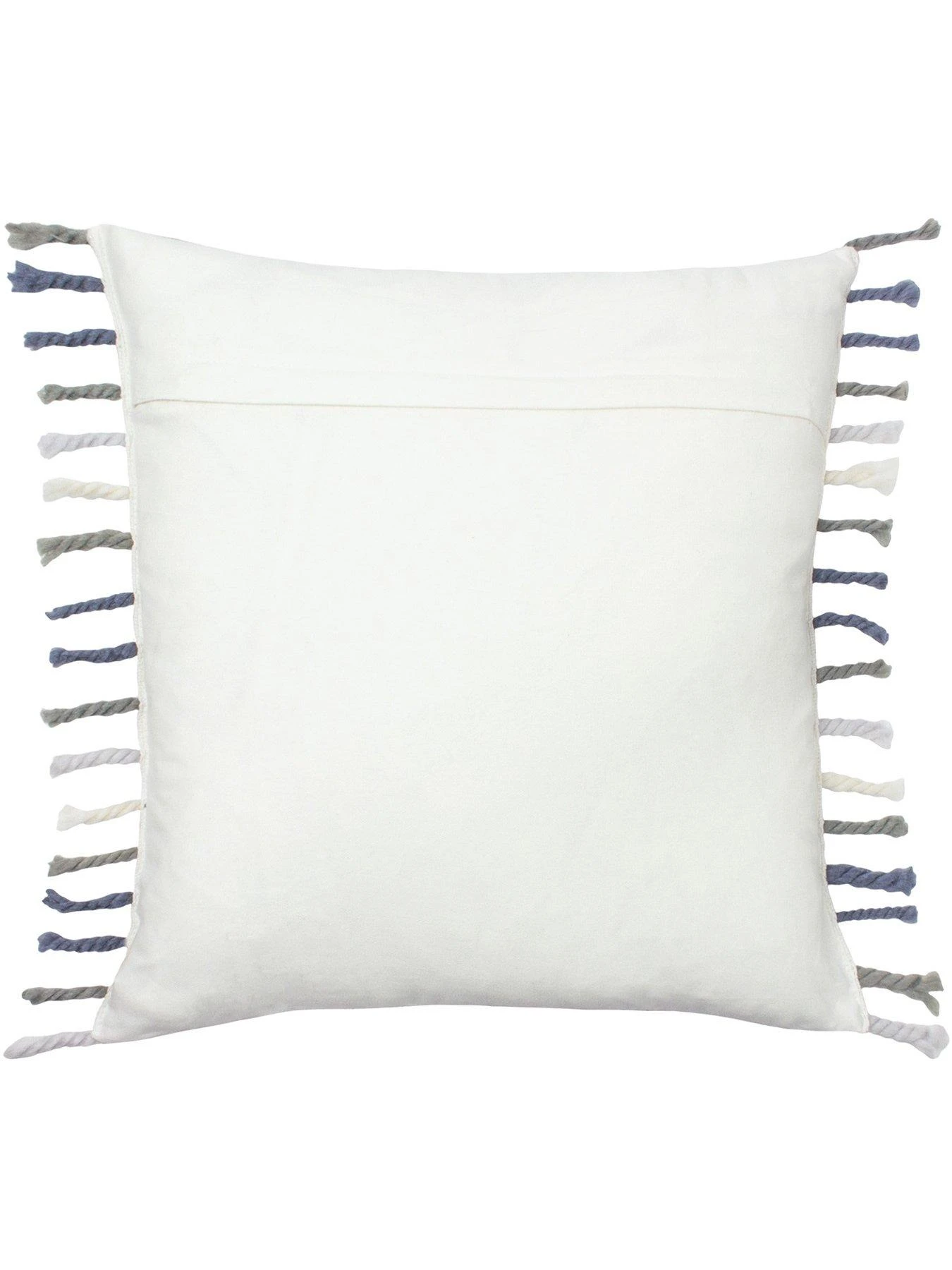 - Complete with a plain reverse, side tassel edging and hidden zip closure.
