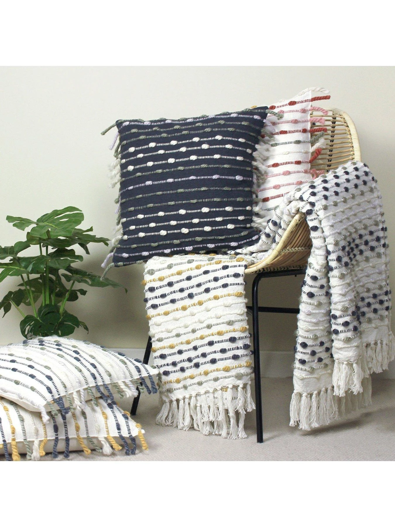 - Featuring a chunky woven tuft stripe and dotted design.