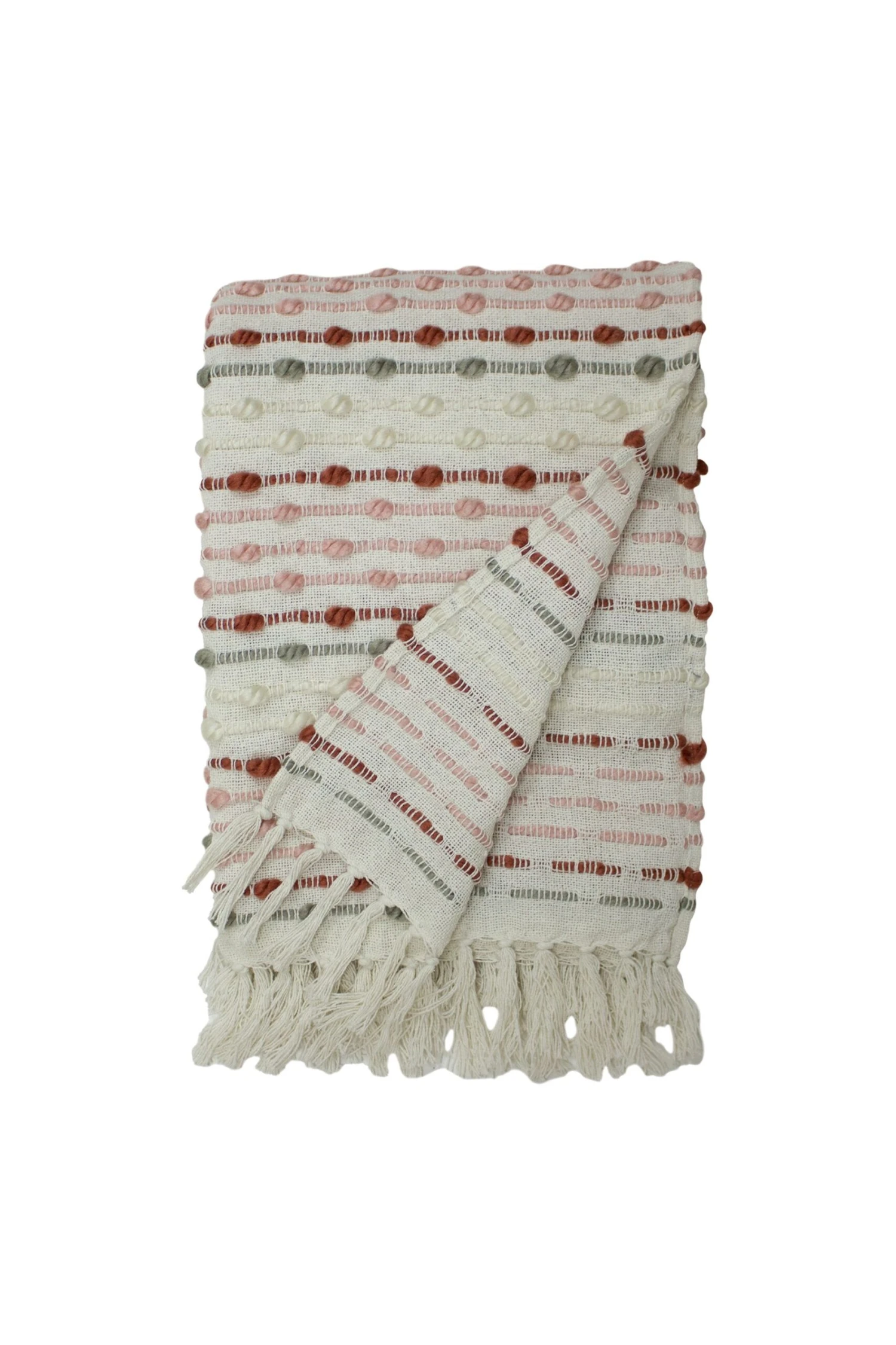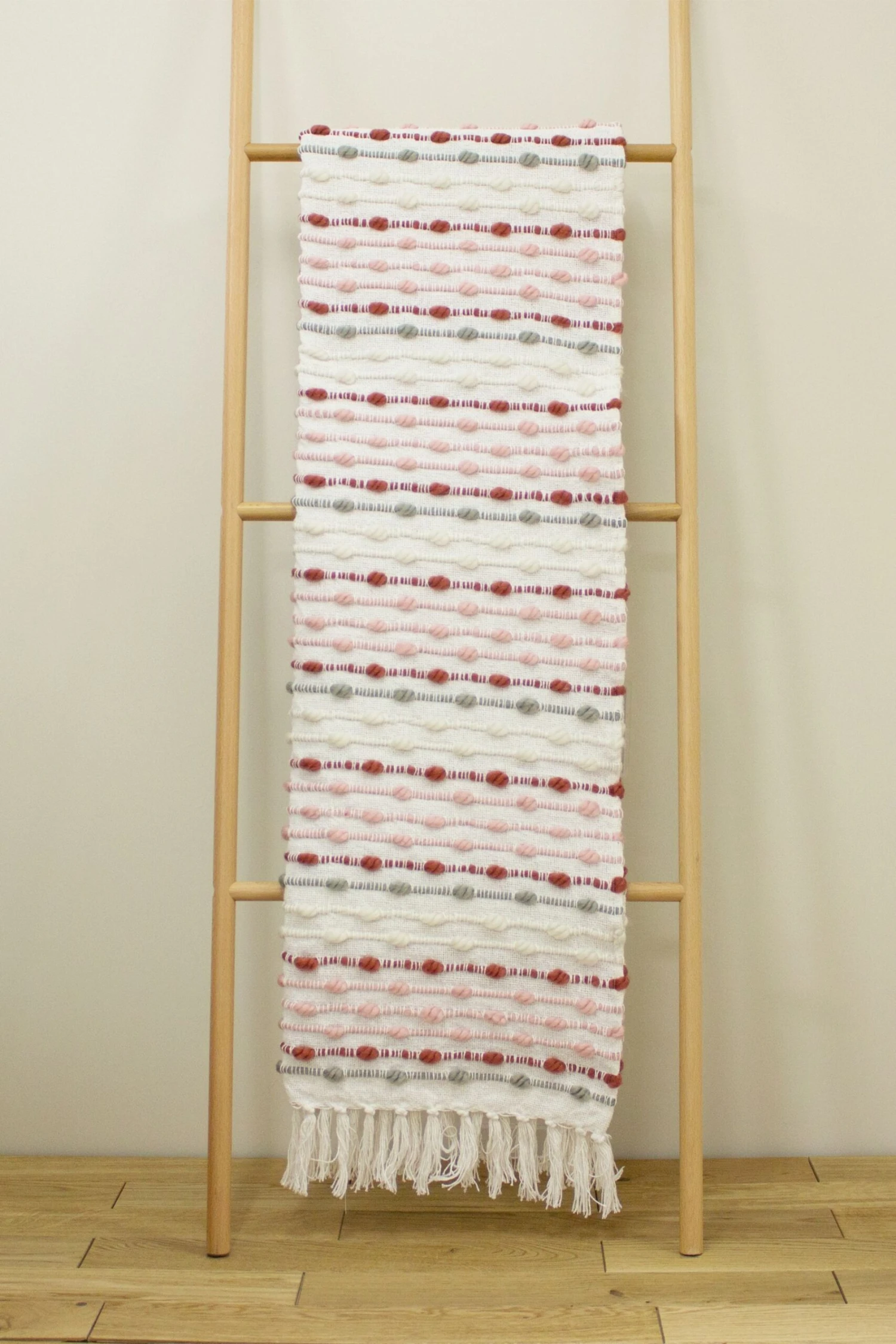 Add texture and warmth to your home, with the chunky Dhadit throw, featuring contrast woven lines in recycled PET yarn and finished with fringed edges.