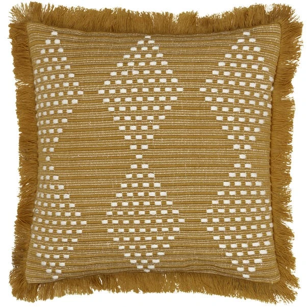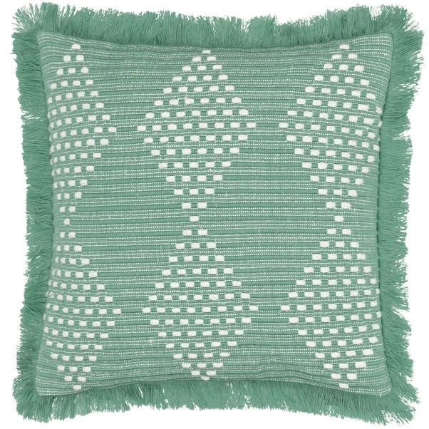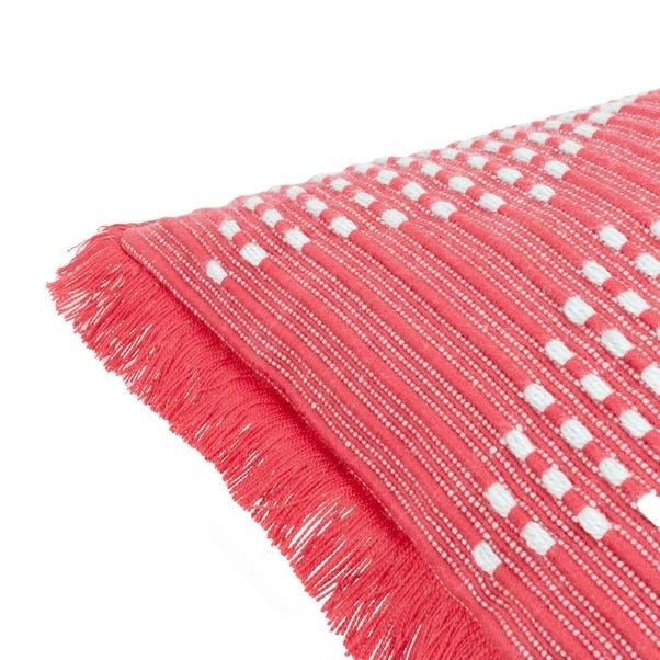 The furn. Kadie Square Cushion showcases a woven geometric design made from durable, recycled PET fabric. With a polyester reverse and fringed trim, this weatherproof cushion is perfect for outdoor and indoor use, combining sustainability with style.