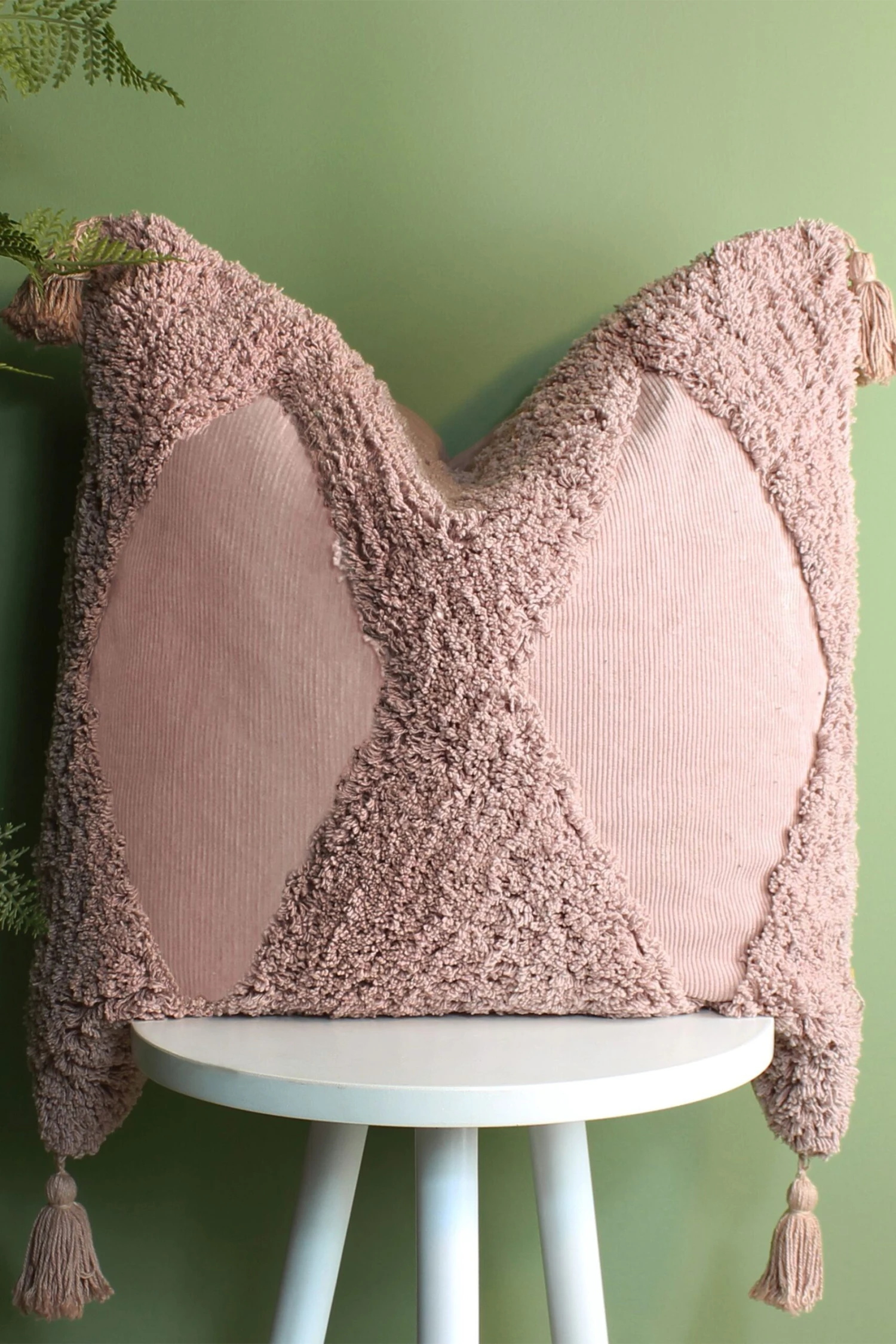 Furn. Kantha Cotton Tassel Corduroy Cushion