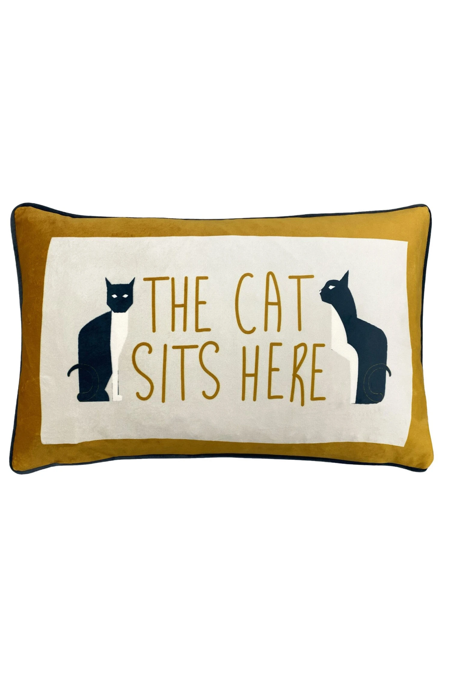 The purrfect cushion for all cat lovers. The adorable cats posing, besides 'The Cat Sits Here' slogan makes it a playful design that will add enjoyment to any room. Complete with a soft velvet reverse and piped edging, this cushion is a lovely finishing touch to your home. Coordinate with the Kitta Duvet Cover Set.