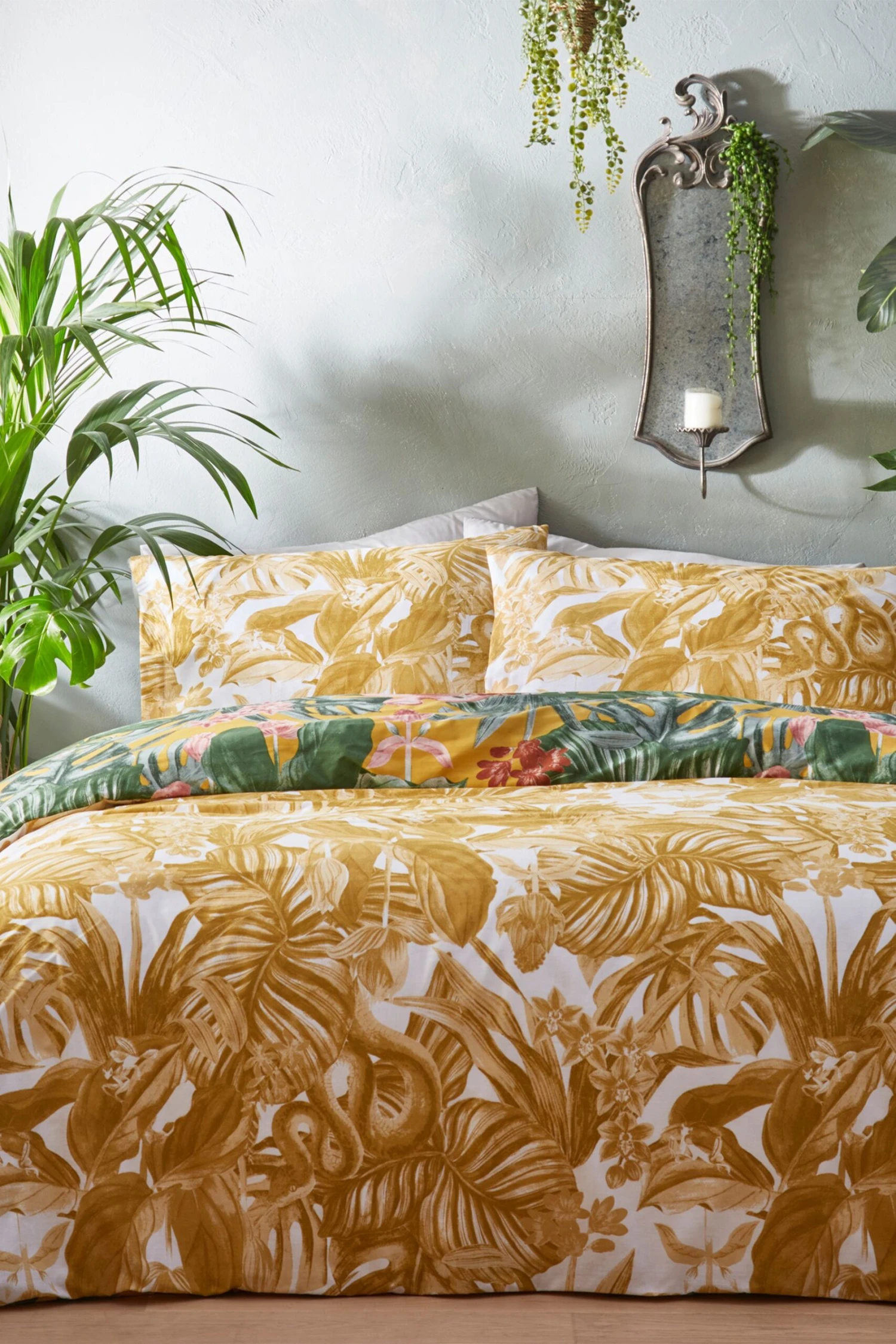 Get lost amongst the tropical floral jungle with this beautiful watercolour bed-set. Delve deep amongst the tropical foliage to discover an exotic array of creatures hiding in their natural habitat, from the deadly praying mantis to an elegant pink snake. Perfect for hot summer nights.