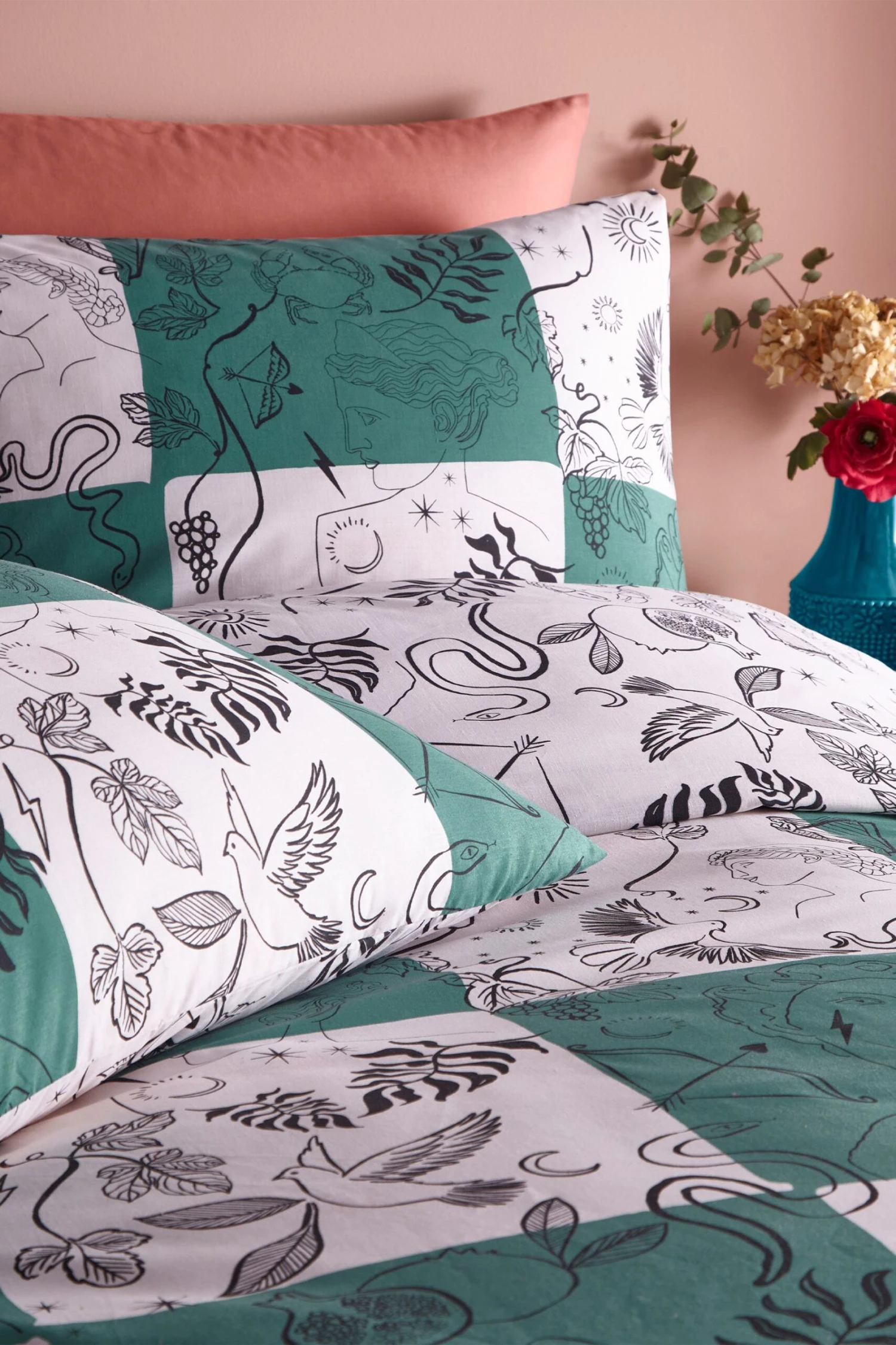 Furn. Mythos Checkerboard Abstract Reversible Duvet Cover And Pillowcase Set