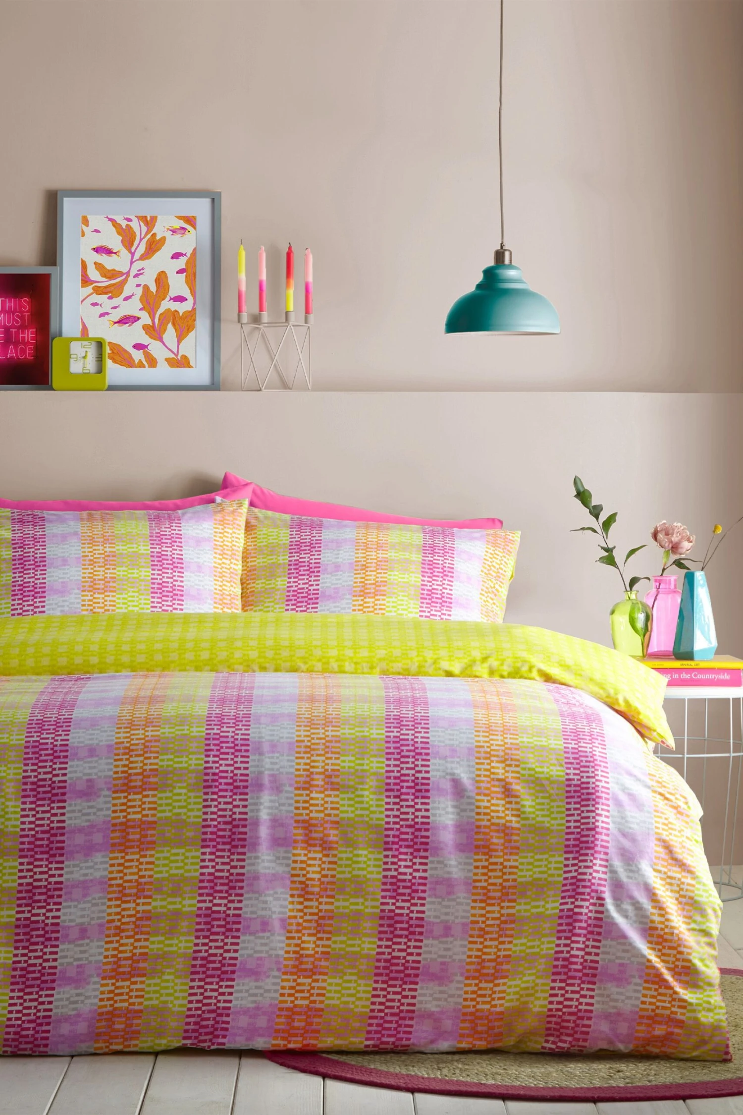 Furn. Neola Geometric Neon Reversible Duvet Cover And Pillowcase Set
