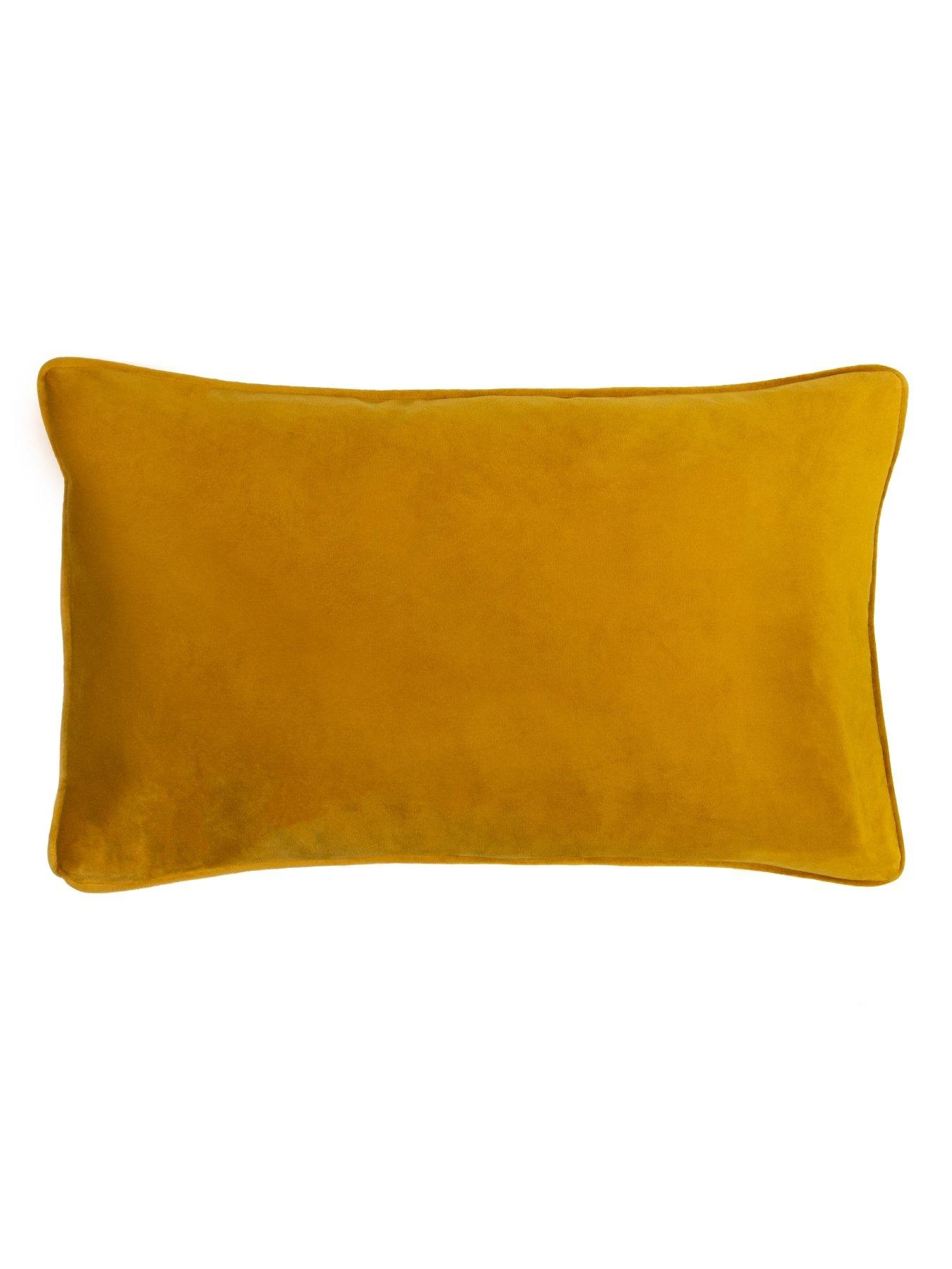 - Complete with a plain opulent gold velvet reverse, complimenting piped trim and zip closure.