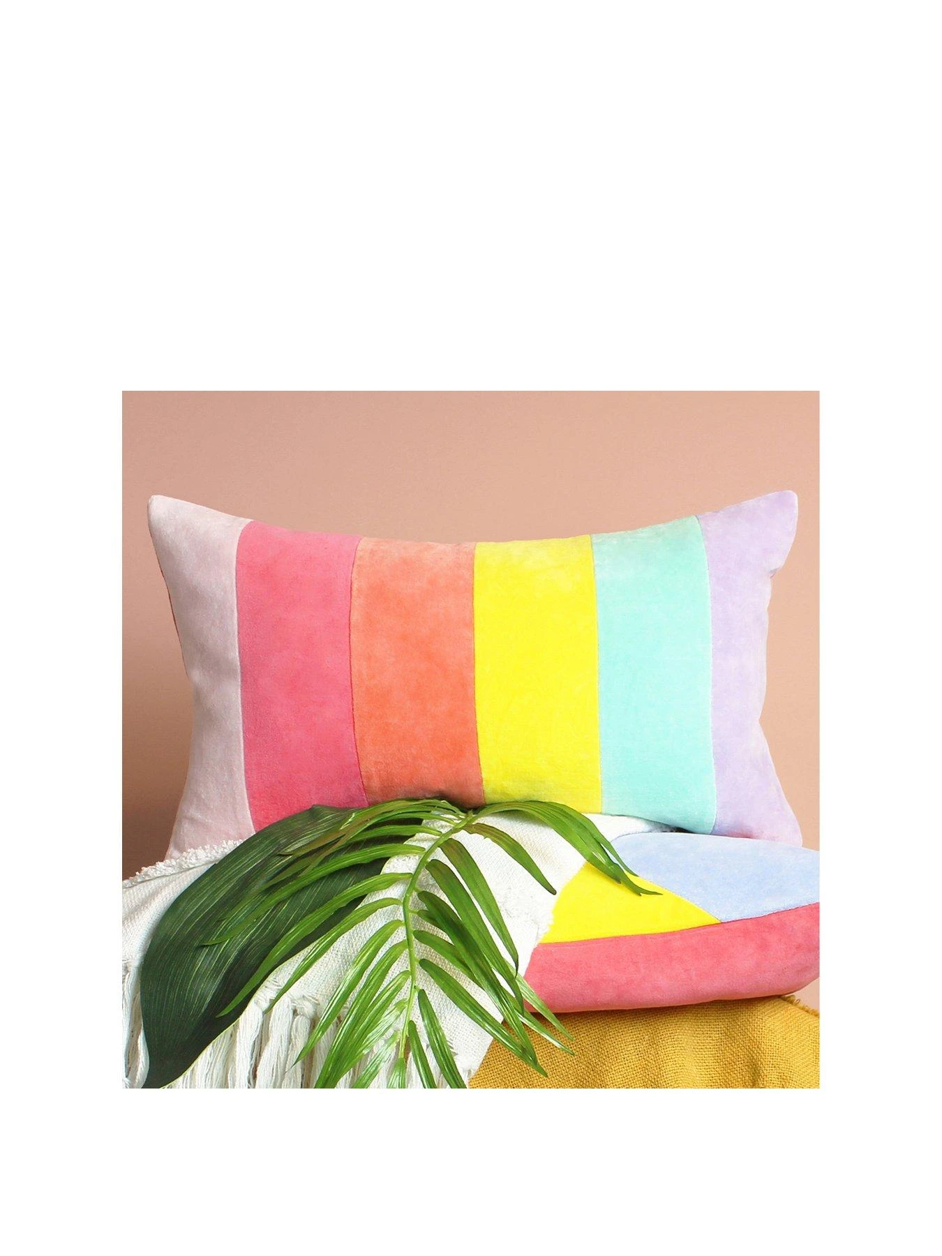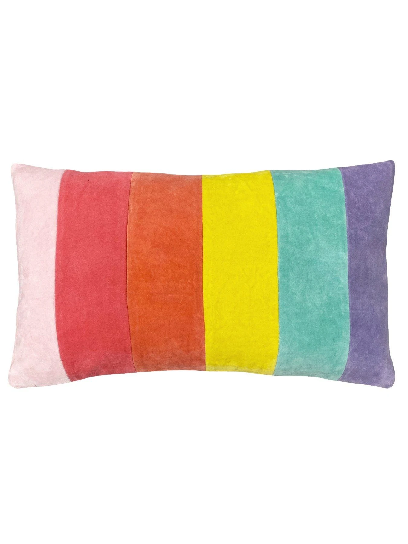 Make a statement with the Rainbow cushion. A rich jewel colour palette in a striped Rainbow design, the perfect addition for a pop of colour in your home.