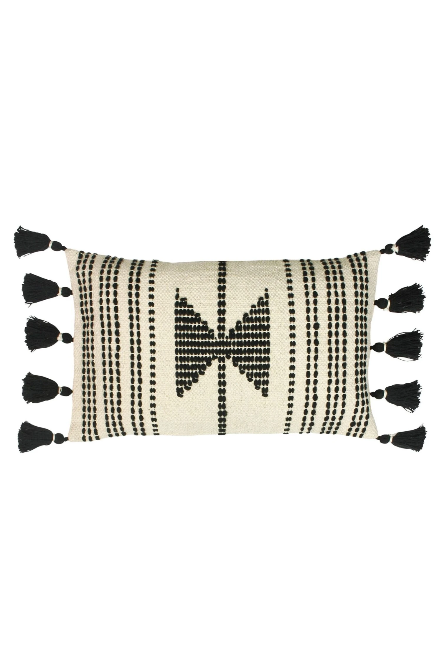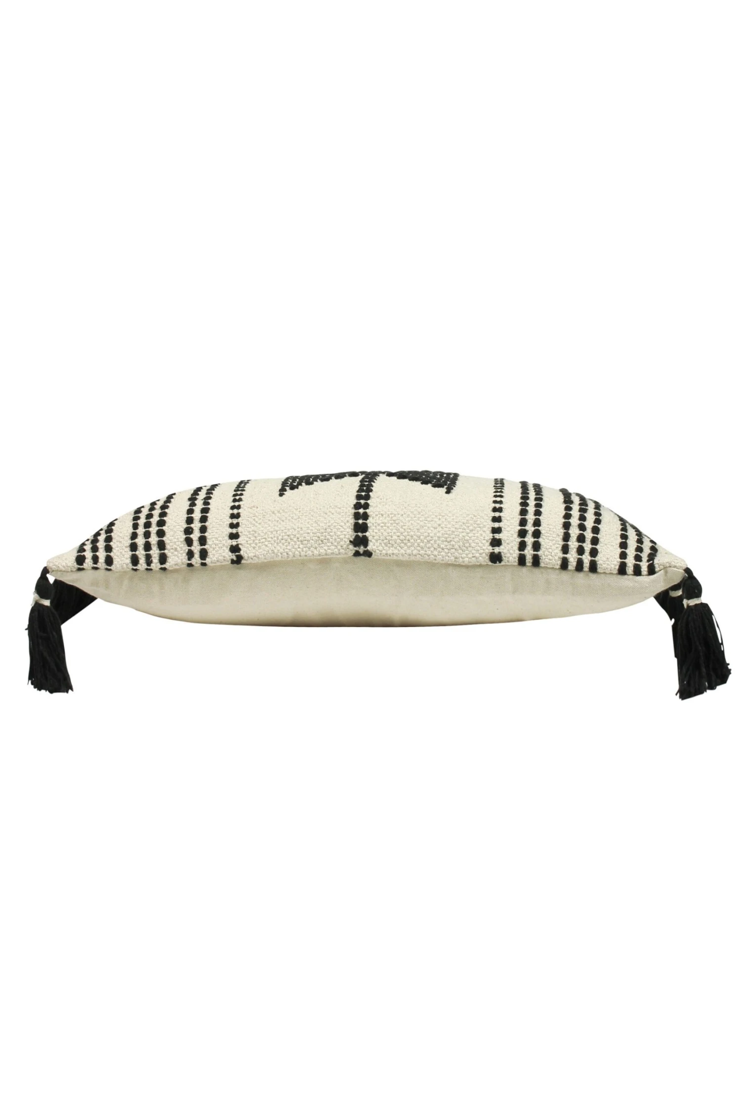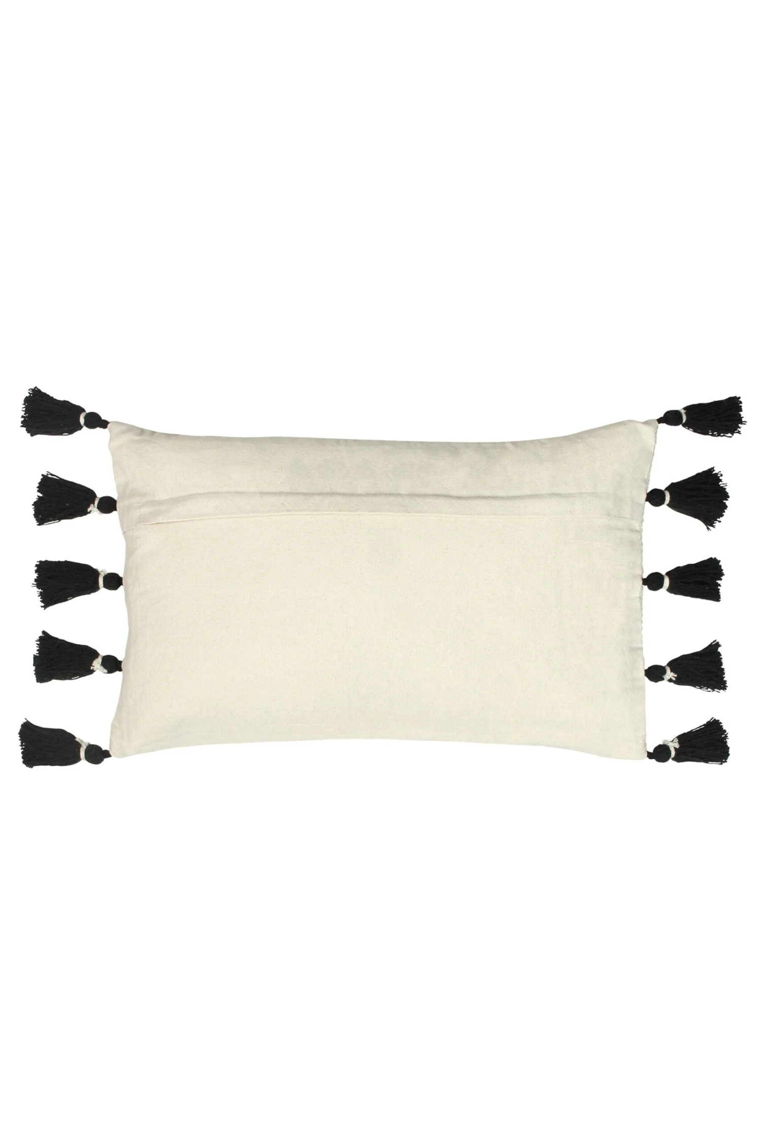 Make a statement in your home with the Sagar cushion. Featuring a bold stitched geometric design on a cotton canvas fabric. Complete with black side tassels, this cushion will sit perfectly in any contemporary interior.