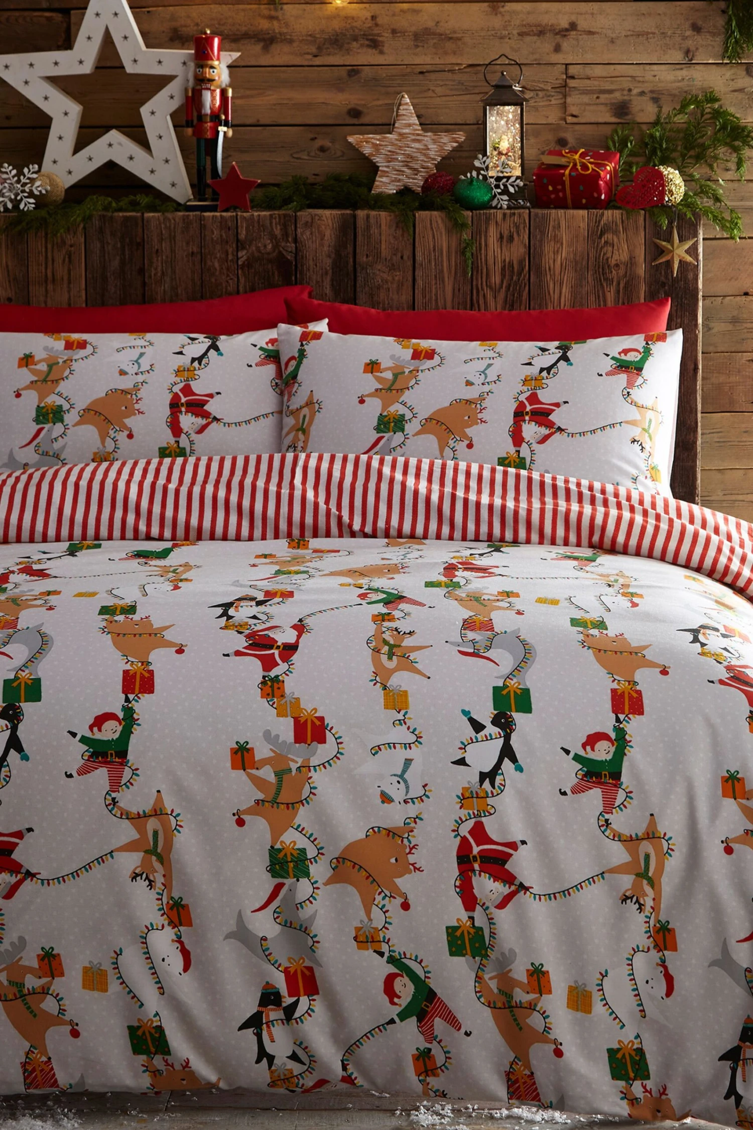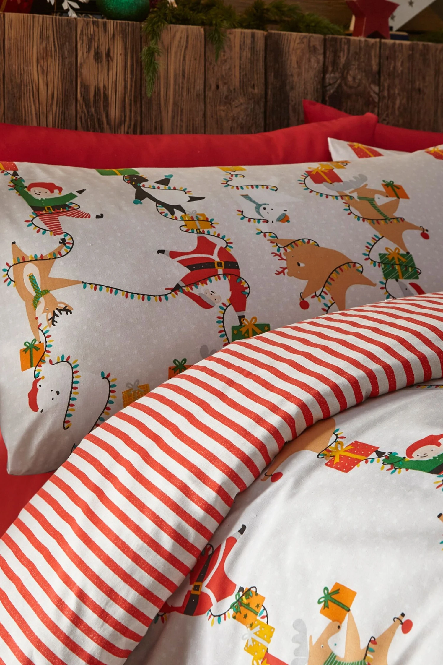 Featuring Santa and his helpers having fun while making Christmas presents. Made of crisp polycotton making this duvet set soft and hard-wearing.