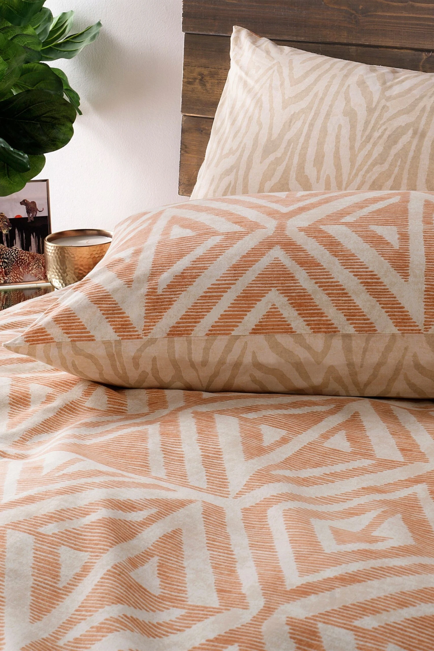 Featuring a global inspired geometric print with a tonal animal print reverse. Made using crisp polycotton making this duvet set soft and hard-wearing.